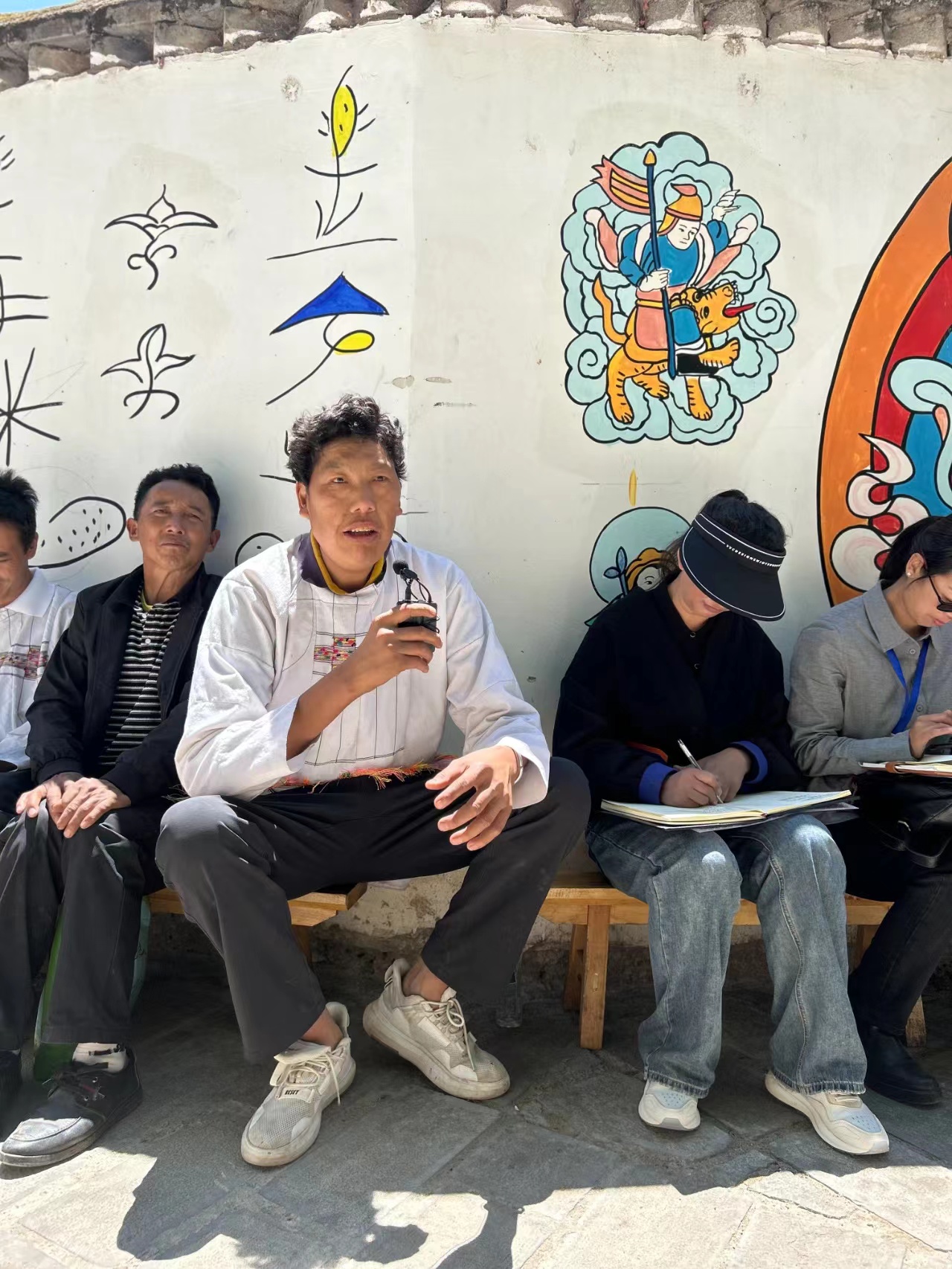 和樹昆在學(xué)習(xí)傳承東巴教各種祭祀儀式的同時,還精于東巴繪畫、面偶制作、東巴紙制造及東巴舞等傳統(tǒng)技藝。在尊重傳統(tǒng)文化的前提下,他注重文化產(chǎn)品創(chuàng)新,對東巴紙進(jìn)行改良,將傳統(tǒng)東巴象形文字與書畫相結(jié)合,做成工藝品。閑暇之余,“化身”繪畫家,在吳樹灣村組活動室、戶外進(jìn)行手工東巴畫創(chuàng)作“文化墻”,他的手繪畫惟妙惟肖且不失文化底蘊,“文化墻”成為宣傳東巴文化的“活招牌”。2019年,他參與一百五十卷東巴經(jīng)手抄本手抄工作(中國國家博物館收藏版)。2020年10月,他將自己制作的長5.8米、寬60厘米的“手繪納西東巴經(jīng)長卷”捐贈給迪慶州圖書館,進(jìn)一步填補了民族文獻(xiàn)典籍征集、收藏的短板。