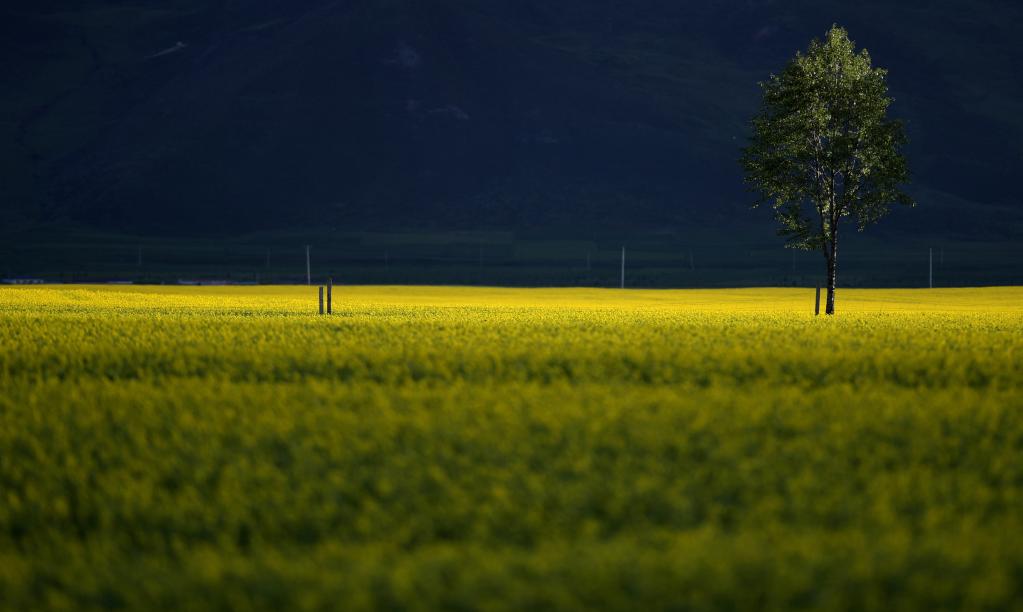 夏日,在位于祁連山腹地的青海省海北藏族自治州門源回族自治縣境內(nèi),油菜花競相綻放,花海、雪山、草原共同組成色彩斑斕的祁連山夏日畫卷。