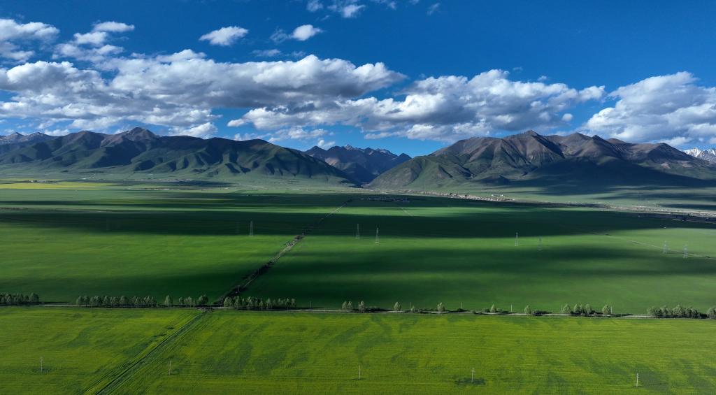 這是7月3日拍攝的門源縣境內(nèi)風光(無人機照片)。 新華社記者 張宏祥 攝