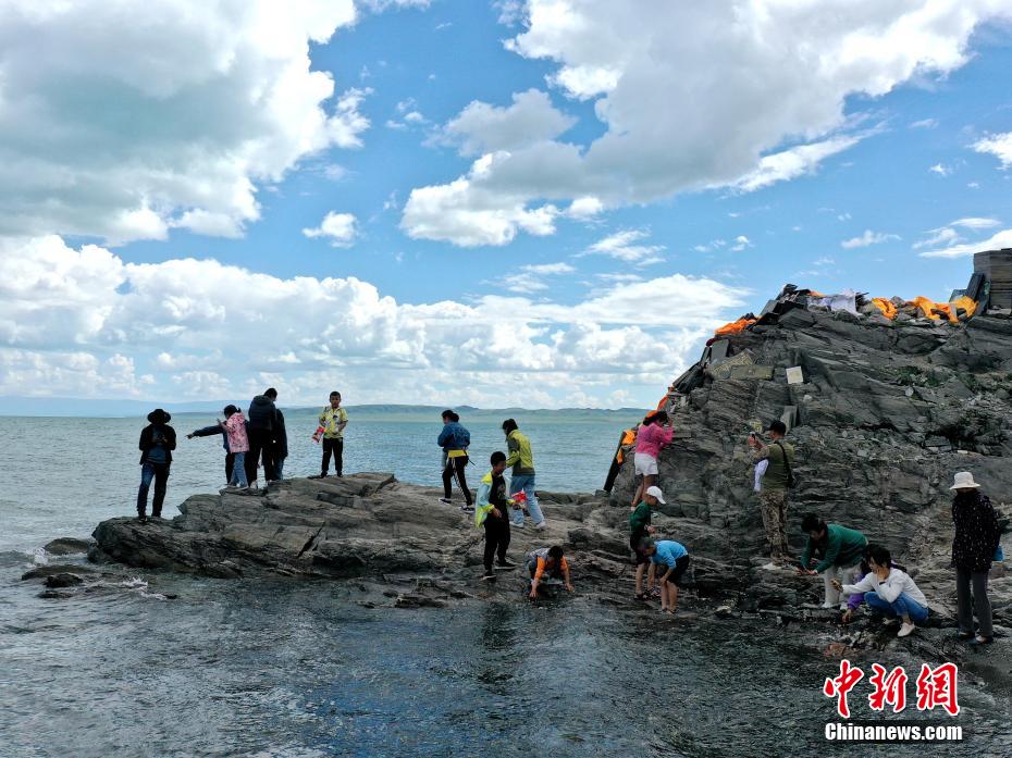 7月盛夏,在青海湖北岸的青海省海北藏族自治州境內(nèi)的青海湖斷崖,眾多省內(nèi)外游客聚集于此,一覽湟魚洄游季的生命奇景。青海湖斷崖視野開(kāi)闊,可以遠(yuǎn)望青海湖的湛藍(lán)色湖面和周圍的雪山山脈。懸崖峭壁屬于天然形成的地質(zhì)地貌,是高于青海湖面十幾到二十米的小崖壁,當(dāng)?shù)孛癖姵T诖诉M(jìn)行祈禱和禱告。青海湖裸鯉俗稱“湟魚”,是青海湖中唯一的大型野生經(jīng)濟(jì)魚類,在青海湖“魚鳥共生”生態(tài)系統(tǒng)中發(fā)揮著獨(dú)特、核心作用。2004年青海湖裸鯉被列入《中國(guó)物種紅色名錄》瀕危物種名單中。每年7月前后,瀕危物種青海湖裸鯉進(jìn)入洄游季,密密麻麻的青海湖裸鯉集中在青海湖斷崖岸邊,頗為壯觀。
