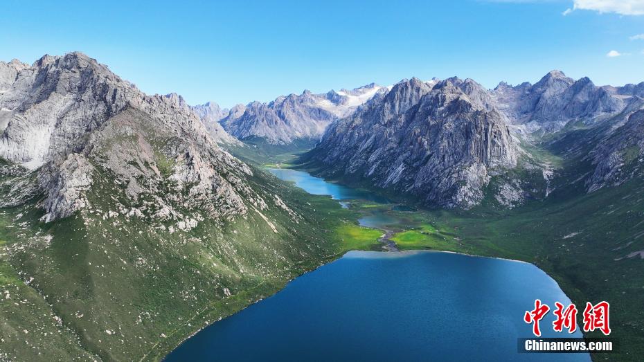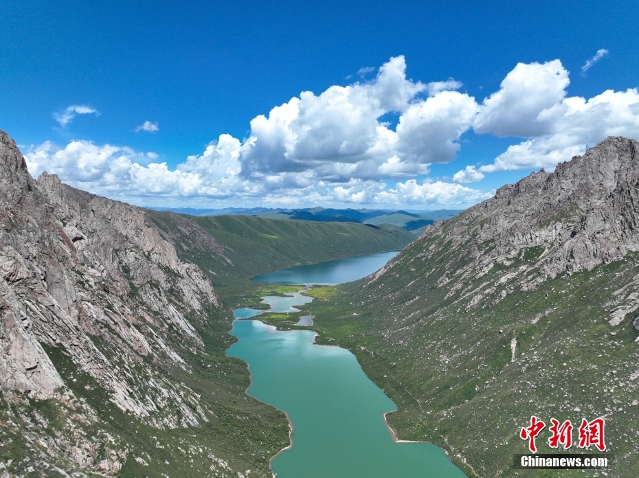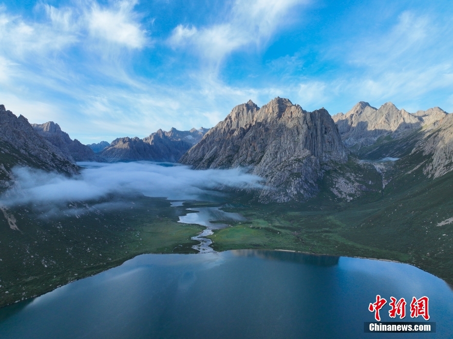 7月19日,盛夏時(shí)節(jié),青海省果洛藏族自治州久治縣年保玉則山間云霧繚繞,山下鮮花盛開,水清草豐,靜謐的湖水與嶙峋的山巒相映成趣,宛如仙境。年保玉則總面積3469平方公里,山形如蓮花,保存有冰蝕地貌、冰磧地貌、現(xiàn)代冰川等地質(zhì)遺跡。(無(wú)人機(jī)照片)中新社記者 馬銘言 攝