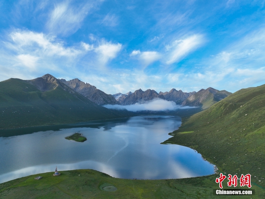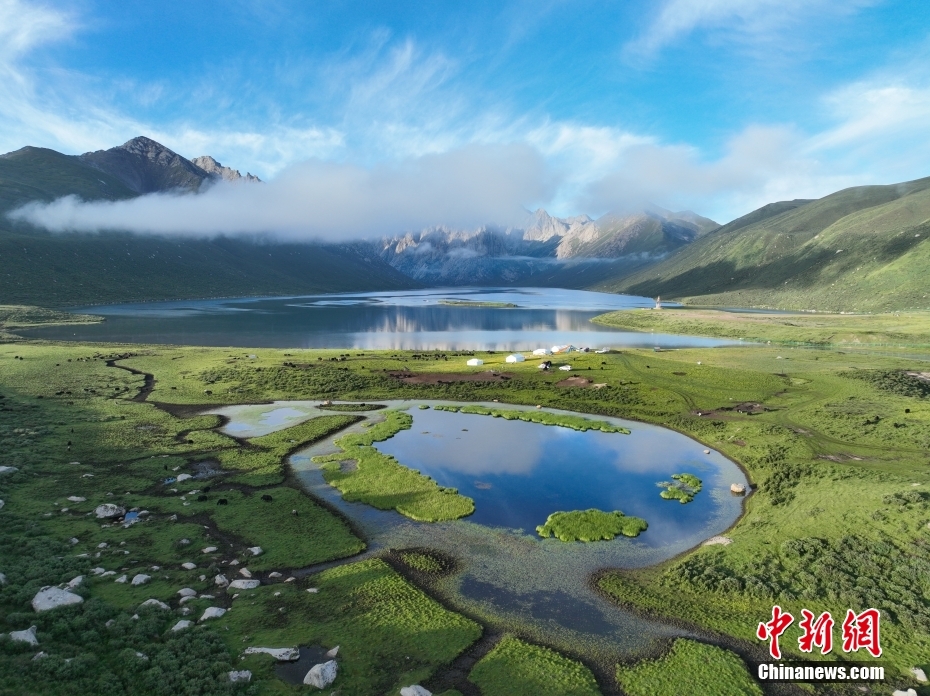 7月19日,盛夏時(shí)節(jié),青海省果洛藏族自治州久治縣年保玉則山間云霧繚繞,山下鮮花盛開,水清草豐,靜謐的湖水與嶙峋的山巒相映成趣,宛如仙境。年保玉則總面積3469平方公里,山形如蓮花,保存有冰蝕地貌、冰磧地貌、現(xiàn)代冰川等地質(zhì)遺跡。中新社記者 馬銘言 攝