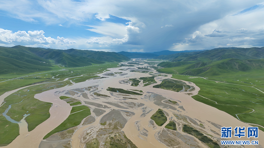 圖為在青海省果洛藏族自治州達日縣境內(nèi)拍攝的黃河辮狀水系(無人機全景照片)。新華網(wǎng) 宋忠勇 攝