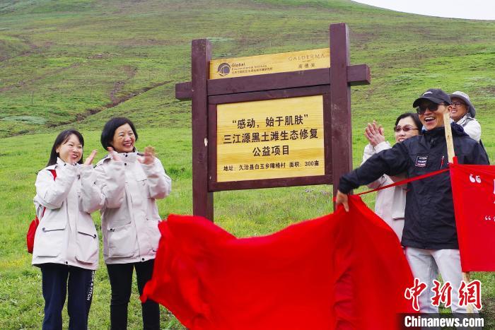 圖為三江源黑土灘生態(tài)修復(fù)公益項(xiàng)目揭牌。北京市朝陽區(qū)永續(xù)全球環(huán)境研究所 供圖