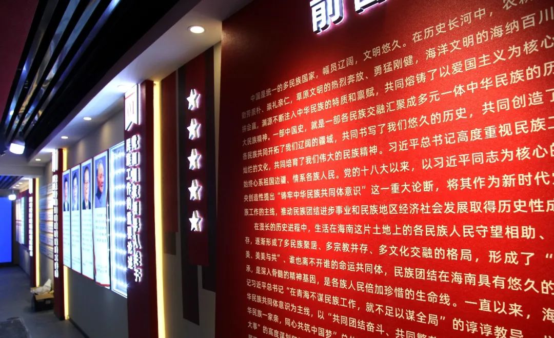 體驗(yàn)館由“淵源流長、共同書寫海南悠久歷史”“命運(yùn)與共、共繪中華民族共同體底色”“團(tuán)結(jié)奮斗、共建中華民族共同體”“人杰地靈、共同孕育圣潔海南”“繼往開來,共圓偉大復(fù)興中國夢”五個(gè)篇章十八個(gè)單元組成,展陳布局完整、內(nèi)容新穎、特色鮮明,是展示海南悠久歷史的“隧道”、改革發(fā)展成果的“窗口”、參觀學(xué)習(xí)交流的“平臺”、各民族交往交流交融的“陣地”。