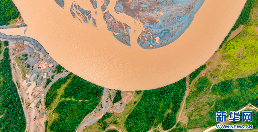 圖為在青海省玉樹藏族自治州雜多縣境內拍攝的扎曲河(無人機照片)。新華網(wǎng) 宋忠勇 攝