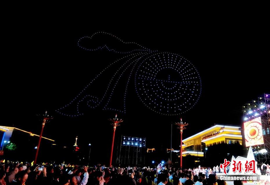 慶祝青海海南州成立70周年 無人機秀點亮高原夜空
