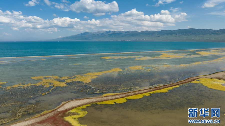 這是8月2日拍攝的青海湖二郎劍景區(qū)二郎劍半島一角。(無人機照片)新華網(wǎng) 郭勇良 攝
