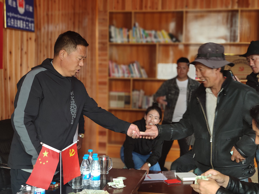 “振業(yè)振興新征程 旺達村分紅大會”的橫幅在村活動中心會議室內(nèi)鮮艷顯眼,村民們興高采烈,早早地等候在這里領(lǐng)取分紅金?!敖衲炅鬓D(zhuǎn)費總計130000元,每戶可分紅5200元。”分紅儀式上,上木拉黨委書記格絨次乃向村民們介紹了旺達村房屋流轉(zhuǎn)、荒地收益情況和民宿產(chǎn)業(yè)下一步規(guī)劃。在場村民臉上無不洋溢著幸福的笑容,高興地鼓起了掌。