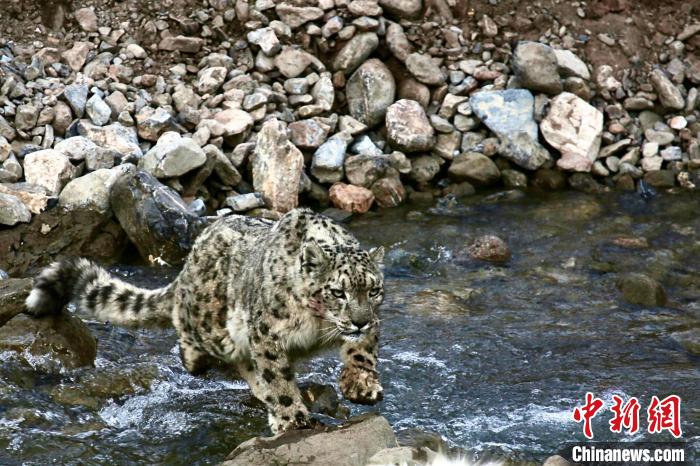 資料圖為攝影師在雜多縣境內(nèi)拍攝的雪豹。雜多縣委宣傳部供圖