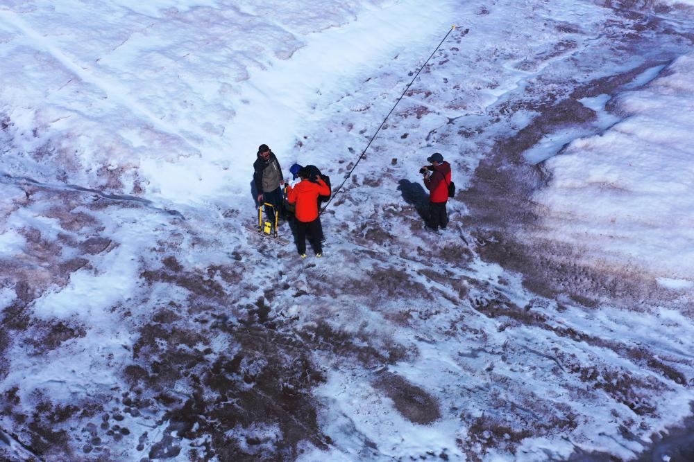 “這是我們第二次登上格拉丹東雪山主峰冰川,在去年測量的區(qū)域開展了4條測量線的雷達(dá)探測?!倍跨f,去年測量區(qū)域冰川平均厚度約12米,此次探測結(jié)果可用來比較冰川的厚薄變化,為計(jì)算冰儲(chǔ)量積累數(shù)據(jù)。
