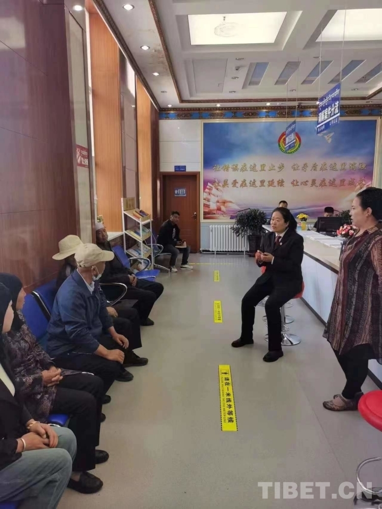 圖為青海省海南藏族自治州共和縣社會(huì)治理綜合服務(wù)中心工作人員為群眾進(jìn)行調(diào)解
