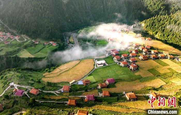 風(fēng)吹麥浪溢清香,田間地頭收割忙。眼下,四川阿壩州金川縣俄熱鄉(xiāng)成片的高原黑青稞迎來收獲季。村間沿路的田地里,黑青稞在微風(fēng)吹拂下如波濤翻滾,泛著金光。高處俯望,遠處群山連綿,近處麥浪起伏,沃野千里,勾勒出一幅“產(chǎn)業(yè)興、百姓富、生態(tài)美”的鄉(xiāng)村振興美麗畫卷。