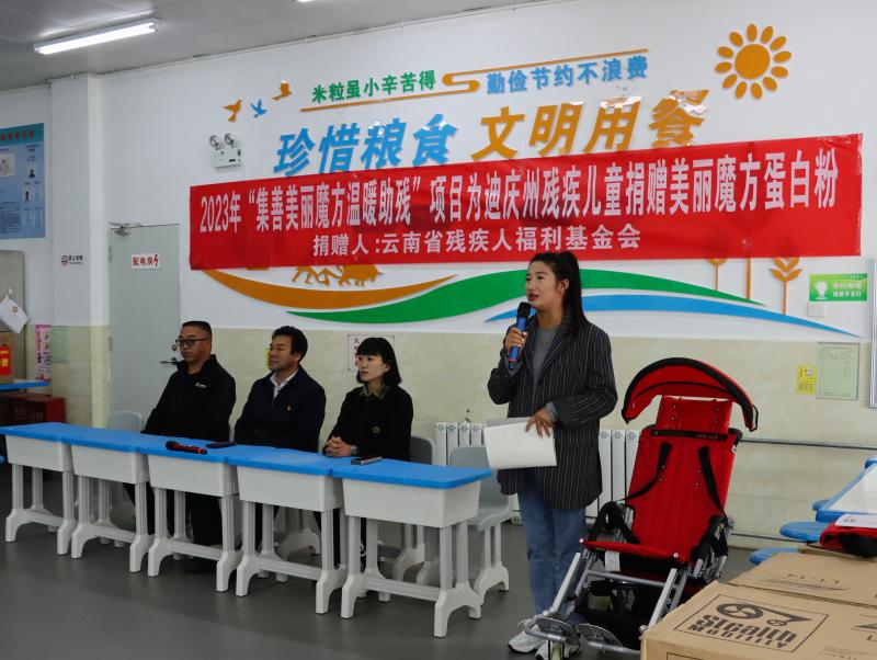 近日,云南省殘疾人福利基金會為我州康復(fù)中心和香格里拉市特殊教育學(xué)校殘疾兒童捐贈了12架兒童輪椅和178罐美麗魔方蛋白粉。這是自云南省殘疾人福利基金會將我州列為2023年“集善美麗魔方溫暖助殘”項(xiàng)目點(diǎn)后的第一批捐贈。