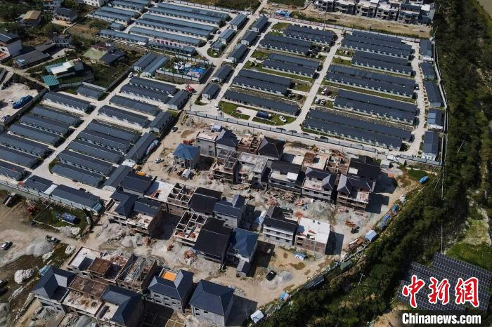 得妥鎮(zhèn)天池山村統(tǒng)規(guī)自建點(diǎn)正在加緊建設(shè)的新房。中新網(wǎng)記者 劉忠俊 攝