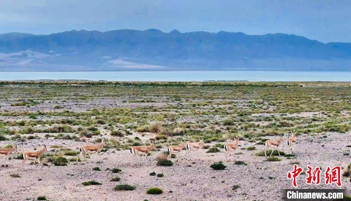 圖為成群鵝喉羚現身都蘭湖國家濕地公園。烏蘭縣融媒體中心供圖