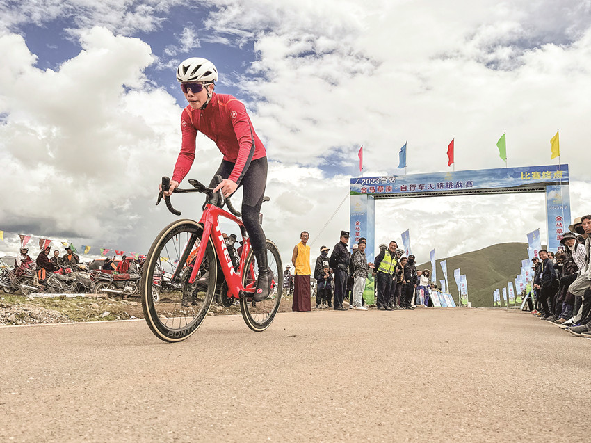 2023年8月11日,作為“福地色達(dá)·金馬之邀”草原游牧文化遺產(chǎn)體驗(yàn)季系列活動(dòng)之一的金馬草原自行車天路挑戰(zhàn)賽在格薩爾文化藝術(shù)中心鳴槍開賽。100多名來自全國各地的自行車專業(yè)運(yùn)動(dòng)員及自行車愛好者齊聚福地色達(dá),共赴一場(chǎng)別開生面的體育盛宴?!∫晃粎①愡x手激動(dòng)地說:“我是從湖北武漢過來的,第一次參加海拔這么高的比賽,感覺很好、很棒。一路風(fēng)景超美,美呆了!如果還有這樣的比賽,我一定會(huì)再來的!”