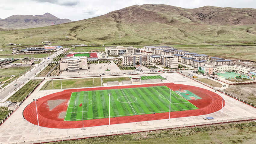 9月12日,走進(jìn)色達(dá)縣椒江希望學(xué)校,寬闊的操場(chǎng)、彩色的跑道、規(guī)范的球場(chǎng),生龍活虎的學(xué)生們正進(jìn)行體育活動(dòng)。