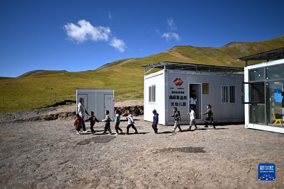 作為曲麻萊縣定點(diǎn)幫扶單位,國家能源集團(tuán)自2022年起累計投入1350萬元,在曲麻萊縣建設(shè)15所陽光幼兒園。陽光幼兒園為集裝箱式房屋,配備屋頂離網(wǎng)儲能光伏系統(tǒng),可以滿足供暖、照明等需求。幼兒園招收居住在周邊牧場的兒童,讓孩子們在離家不遠(yuǎn)處就能接受學(xué)前教育。