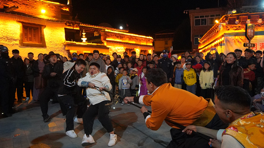 “江流宛轉(zhuǎn)繞芳甸,月照花林皆似霰……”農(nóng)歷八月十五,月色籠罩下的勒通古鎮(zhèn)·千戶藏寨,流淌著中華詩歌的悠悠古韻。9月29日晚,“我們的節(jié)日·中秋”新時(shí)代文明實(shí)踐系列活動(dòng)之“月滿理塘、愛我中華”文藝展演,引得群眾和游客爭(zhēng)相拍照。藏戲舞蹈“扎西雪巴”、藏族踢踏舞讓觀眾領(lǐng)略到濃郁的民族風(fēng)情,詩朗誦伴舞《我愛你,中國》引人入勝……一場(chǎng)場(chǎng)精彩演出展現(xiàn)了傳統(tǒng)文化的多重魅力。