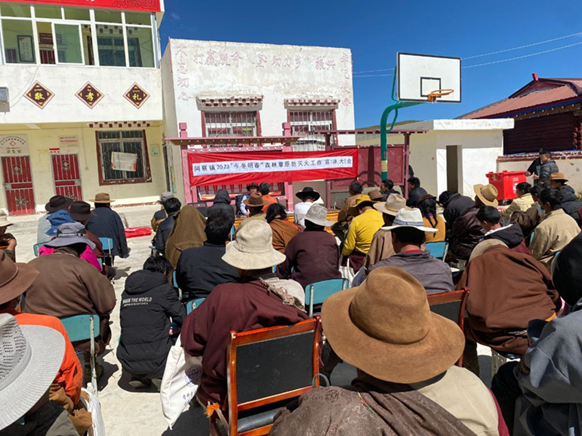 入秋以來,隨著氣溫下降、濕度減弱,森林、草原、濕地的植被含水率降低、干燥易燃,戶外旅游、農(nóng)事用火等野外火源管理難度進(jìn)一步增大,也讓秋冬季森林草原防火工作壓力陡增?!按蠹乙欢ㄒ涀?,進(jìn)山不要帶火種??吹接谢?、有煙馬上上報(bào)……”在白玉縣阿察鎮(zhèn)開展的2023年“今冬明春”森林草原防滅火政策宣講大會(huì)上,宣講員用通俗易懂的本土方言向村民們反復(fù)叮囑防火注意事項(xiàng)。連日來,該鎮(zhèn)分別組織人員深入轄區(qū)四個(gè)行政村開展宣講大會(huì),宣傳森林草原防滅火政策知識(shí),同時(shí)以案示警,通過宣講森林草原火災(zāi)典型事例,向群眾普及違反森林草原防滅火相關(guān)法律法規(guī)的嚴(yán)重后果,著力提升大家的防火安全意識(shí),最大限度地預(yù)防和減少森林火災(zāi)的發(fā)生。