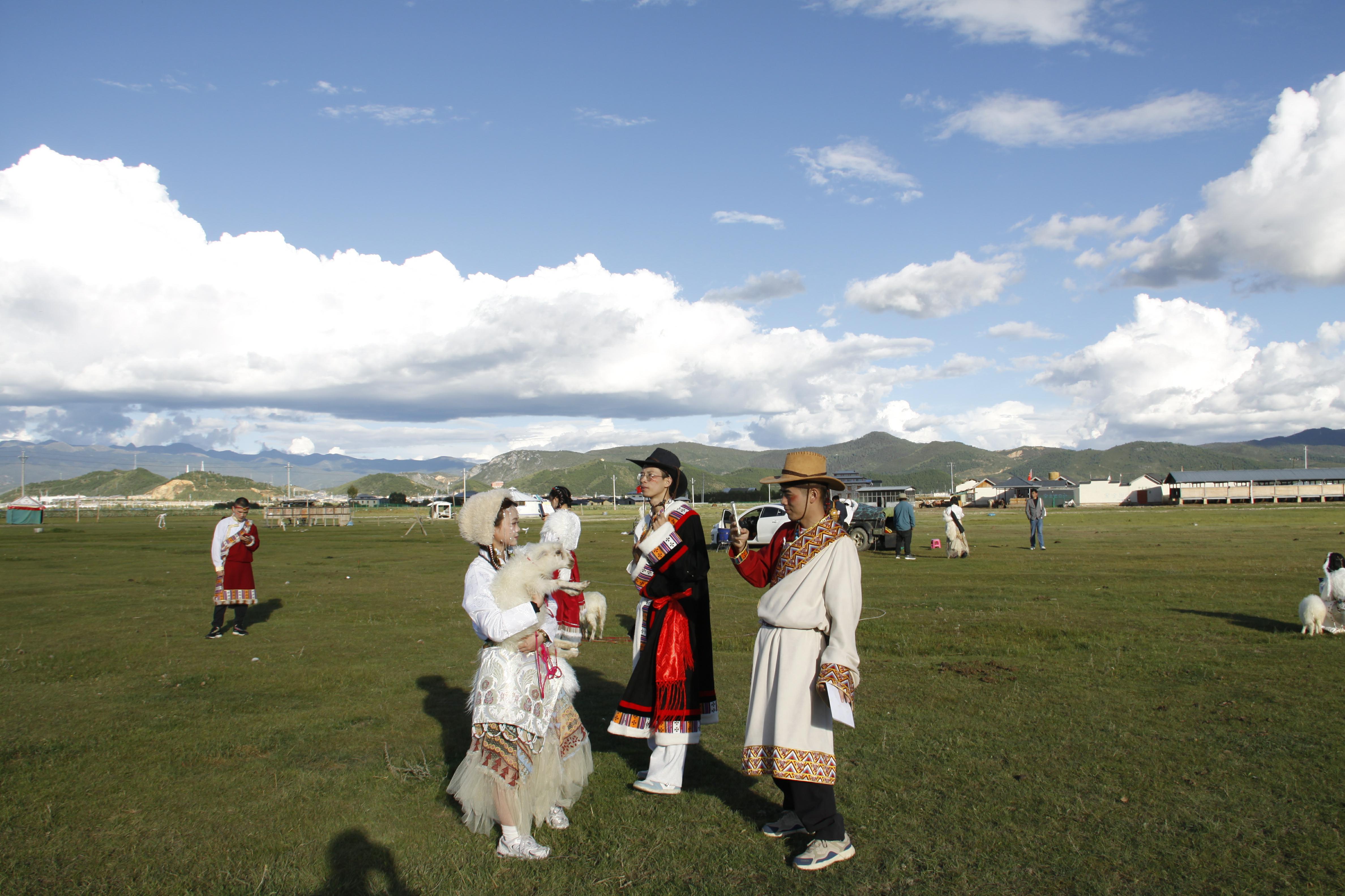 時下,迪慶高原秋景如畫。眾多游客紛紛到香格里拉市建塘草原打卡,在藍(lán)天白云下,有的騎馬賞景,有的身著民族服裝旅拍,還有的與小綿羊親密接觸,構(gòu)成了一道道亮麗的風(fēng)景線。