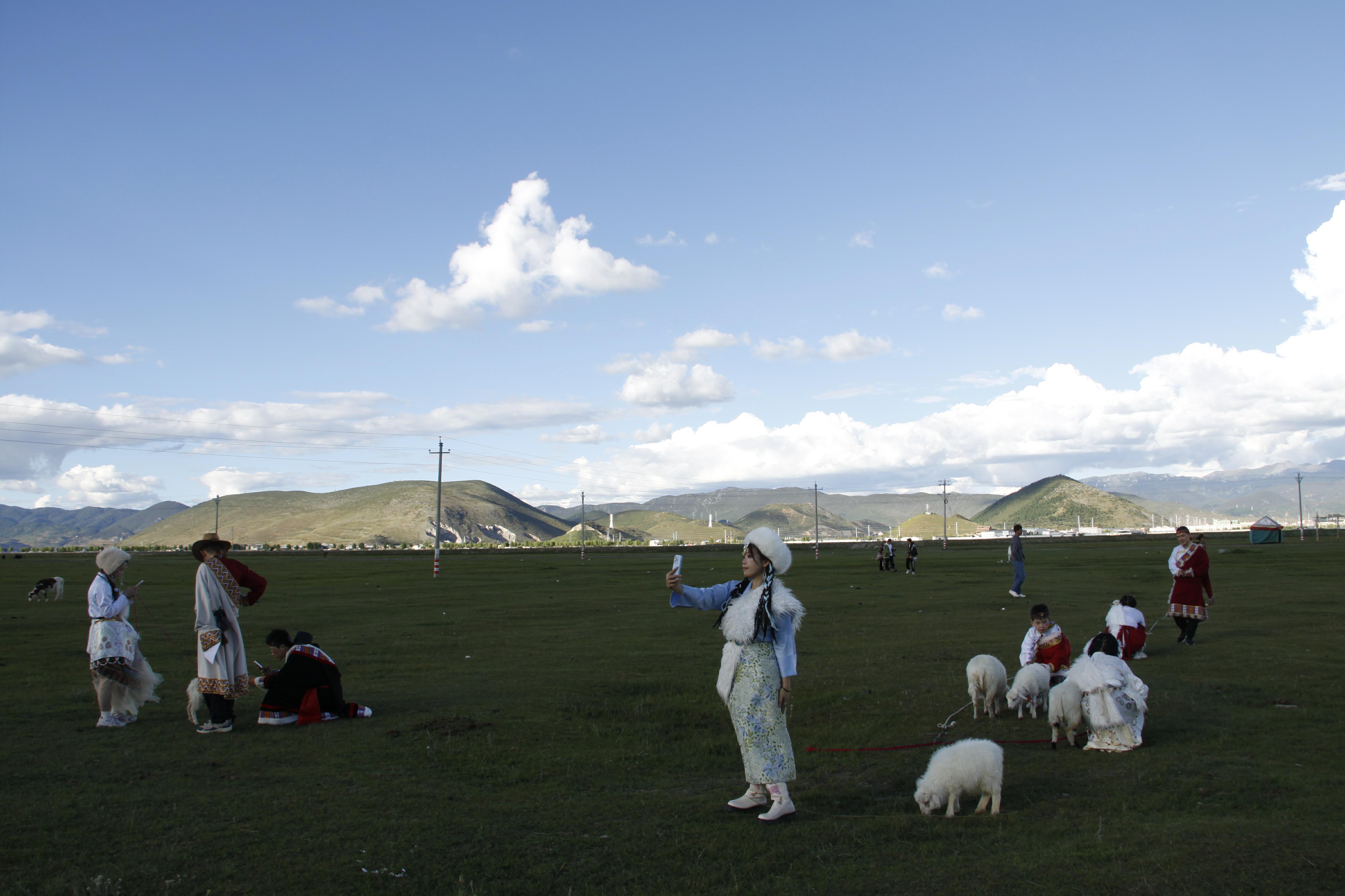 游客紛紛到香格里拉市建塘草原打卡