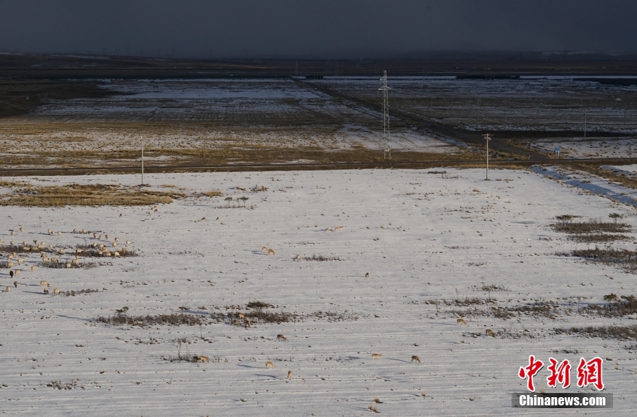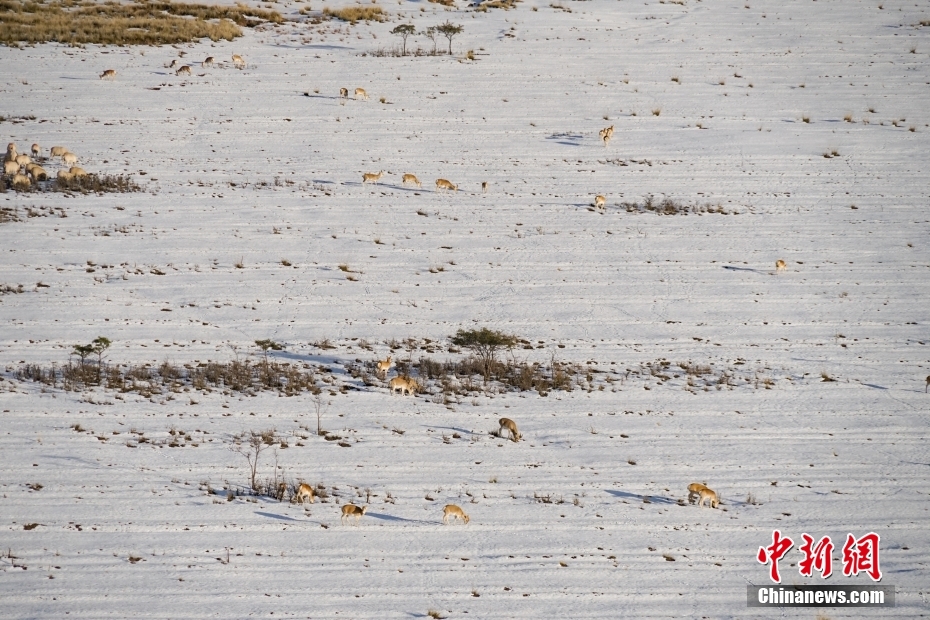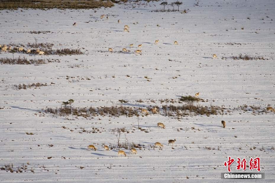 10月12日,成群普氏原羚在青海湖北岸雪中覓食、漫步。當(dāng)日,在青海湖北岸的青海省海北藏族自治州剛察縣哈爾蓋“羚羊小鎮(zhèn)”,成群的普氏原羚在雪中覓食、漫步。普氏原羚是世界瀕危物種、國家一級重點保護(hù)野生動物,現(xiàn)僅分布于青海湖周圍,成為青海湖獨有的珍稀有蹄類動物和旗艦物種。中新社記者 馬銘言 攝