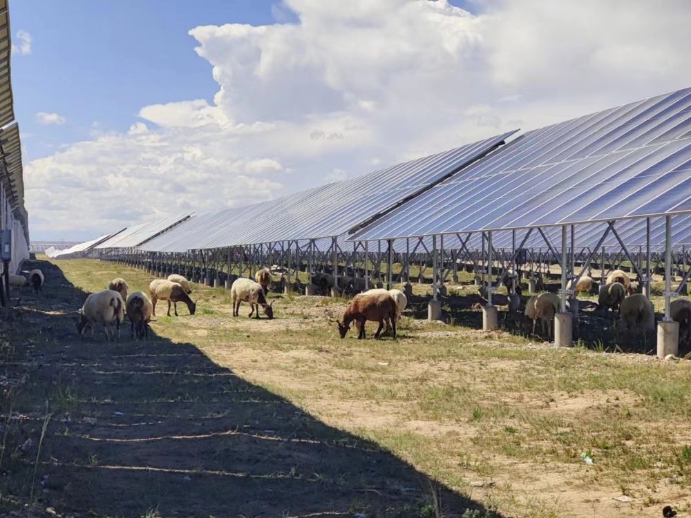 “牧光儲(chǔ)”項(xiàng)目依托當(dāng)?shù)刎S富的農(nóng)牧資源,采用光伏板上發(fā)電,光伏板下種草、牧羊的方式,構(gòu)建新能源開發(fā)與畜牧業(yè)協(xié)同發(fā)展的“牧光互補(bǔ)”新模式。