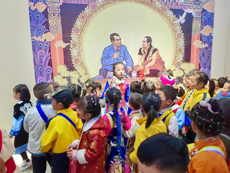 展館內(nèi),“格?;ㄐ⌒≈v解員”進(jìn)行著生動(dòng)地講解,通過一件件文物、一幅幅圖片、一個(gè)個(gè)互動(dòng)景觀訴說雪域高原上的紅色歷史,引導(dǎo)小朋友們體悟那段不平凡的崢嶸歲月,在行走的課堂里收獲知識(shí)和成長(zhǎng)。