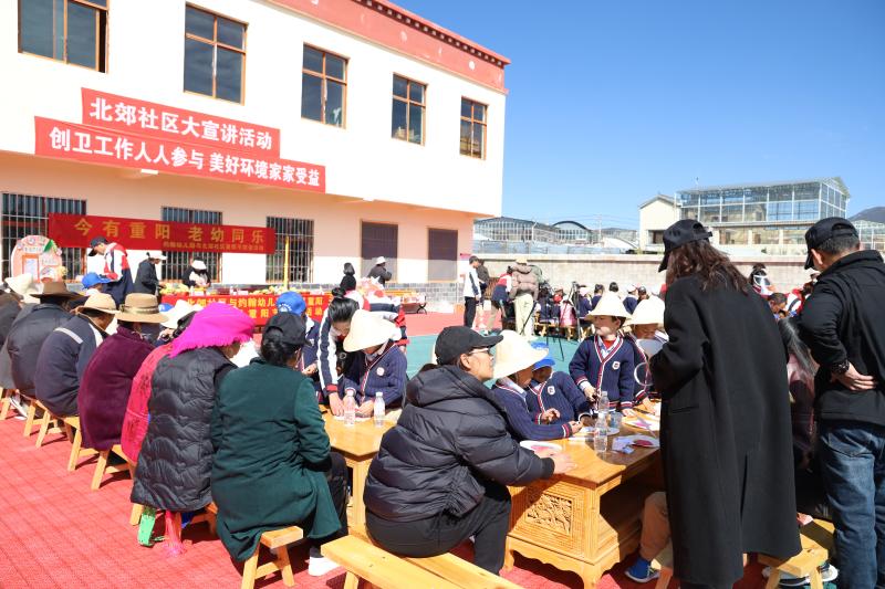 10月23日,香格里拉市建塘鎮(zhèn)北郊社區(qū)與約翰幼兒園開展以“今又重陽 老幼同樂”為主題的重陽節(jié)活動。