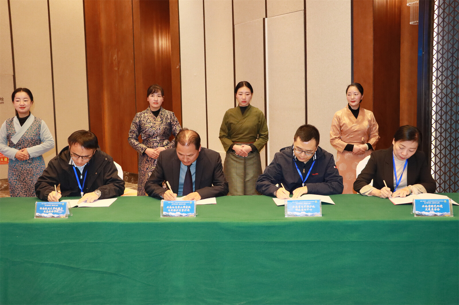 會(huì)上,云南白馬雪山國(guó)家級(jí)自然保護(hù)區(qū)管護(hù)局、西南林業(yè)大學(xué)地理與生態(tài)旅游學(xué)院、云南省自然保護(hù)地研究監(jiān)測(cè)中心、云南省綠色環(huán)境發(fā)展基金會(huì)就社區(qū)保護(hù)地建設(shè)、滇金絲猴旗艦物種的保護(hù)工作等內(nèi)容簽訂合作框架協(xié)議,參會(huì)嘉賓還就白馬雪山保護(hù)區(qū)工作、國(guó)家公園建設(shè)等主題進(jìn)行分享交流。
