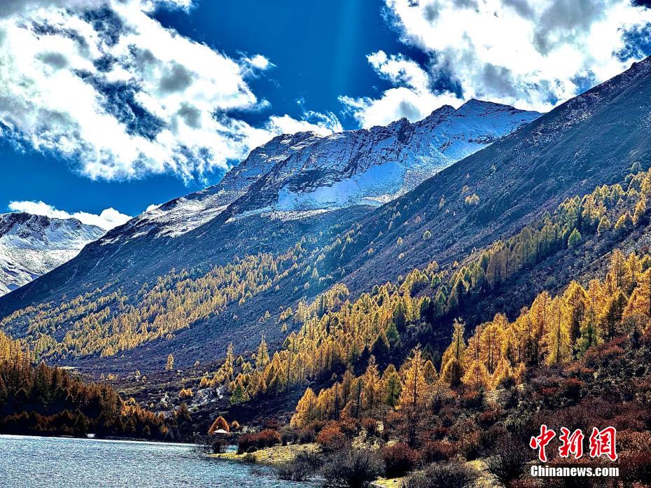 雪山邂逅彩林和海子美不勝收。陳邦亮 攝