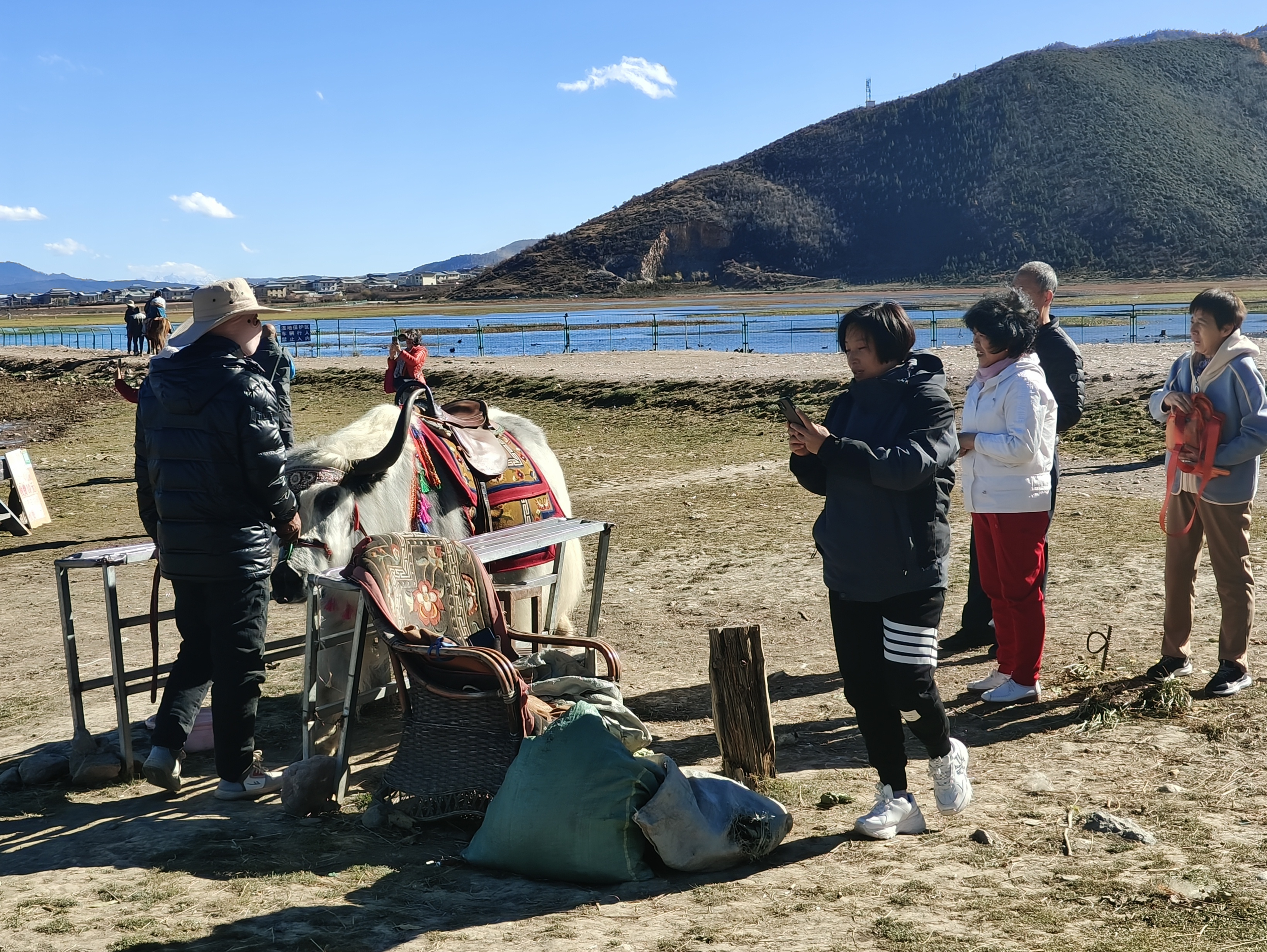 進(jìn)入11月,迪慶的氣溫雖然持續(xù)下降,但并不影響游客們的游玩熱情。納帕海陽光明媚、碧波蕩漾,不少游客選擇到納帕海環(huán)湖游,騎行的、騎馬的、賞景的、拍照的游客絡(luò)繹不絕。圖為游客在納帕海濕地騎馬,體驗(yàn)藏族馬背文化魅力。