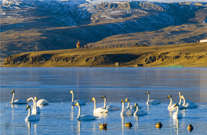 一到冬天,青海湖都會(huì)迎來數(shù)百只大天鵝越冬。青海湖是維系青藏高原東北部生態(tài)安全的重要水體,也是中亞、東亞兩條候鳥遷徙路線的交匯點(diǎn)。