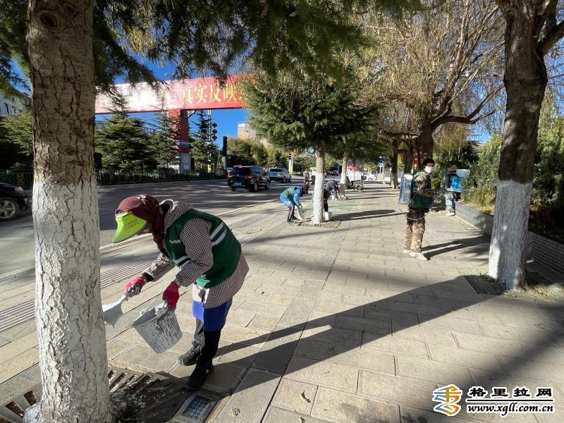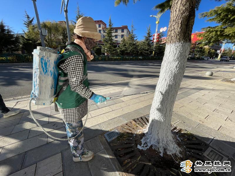 入冬以來(lái),為保障樹(shù)木“安全健康”過(guò)冬,香格里拉市有關(guān)部門(mén)在城區(qū)主次干道、公園、廣場(chǎng)對(duì)樹(shù)木進(jìn)行涂白,這是入冬后樹(shù)木養(yǎng)護(hù)管理的一項(xiàng)措施,可以有效防止樹(shù)木遭受蟲(chóng)害和凍害。圖為綠化工人一手提漆桶、一手拿刷子,在康珠大道將綠化樹(shù)主干逐一涂白。( 此里只瑪攝)