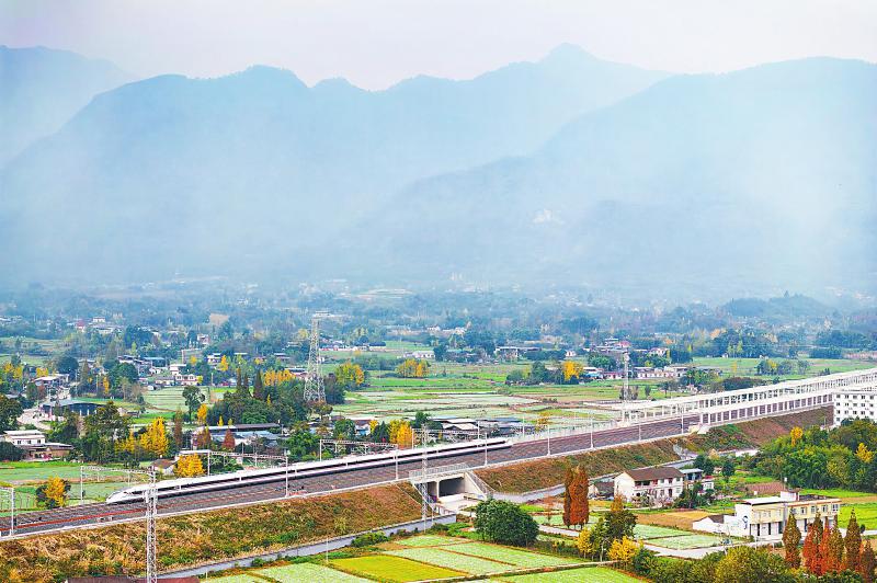 11月23日,試跑動(dòng)車組行駛在綿陽市安州區(qū)境內(nèi)。 四川日報(bào)全媒體記者 何海洋 攝