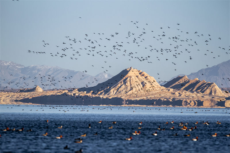 初冬時(shí)節(jié),位于柴達(dá)木盆地的可魯克湖-托素湖省級(jí)自然保護(hù)區(qū)迎來首批越冬候鳥,它們或在湖面嬉戲,或在天空翱翔,為冬季的柴達(dá)木盆地增添了一份美麗與靈動(dòng)。