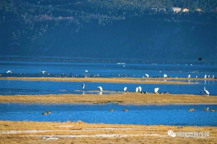 候鳥們一會(huì)兒在水面嬉戲覓食