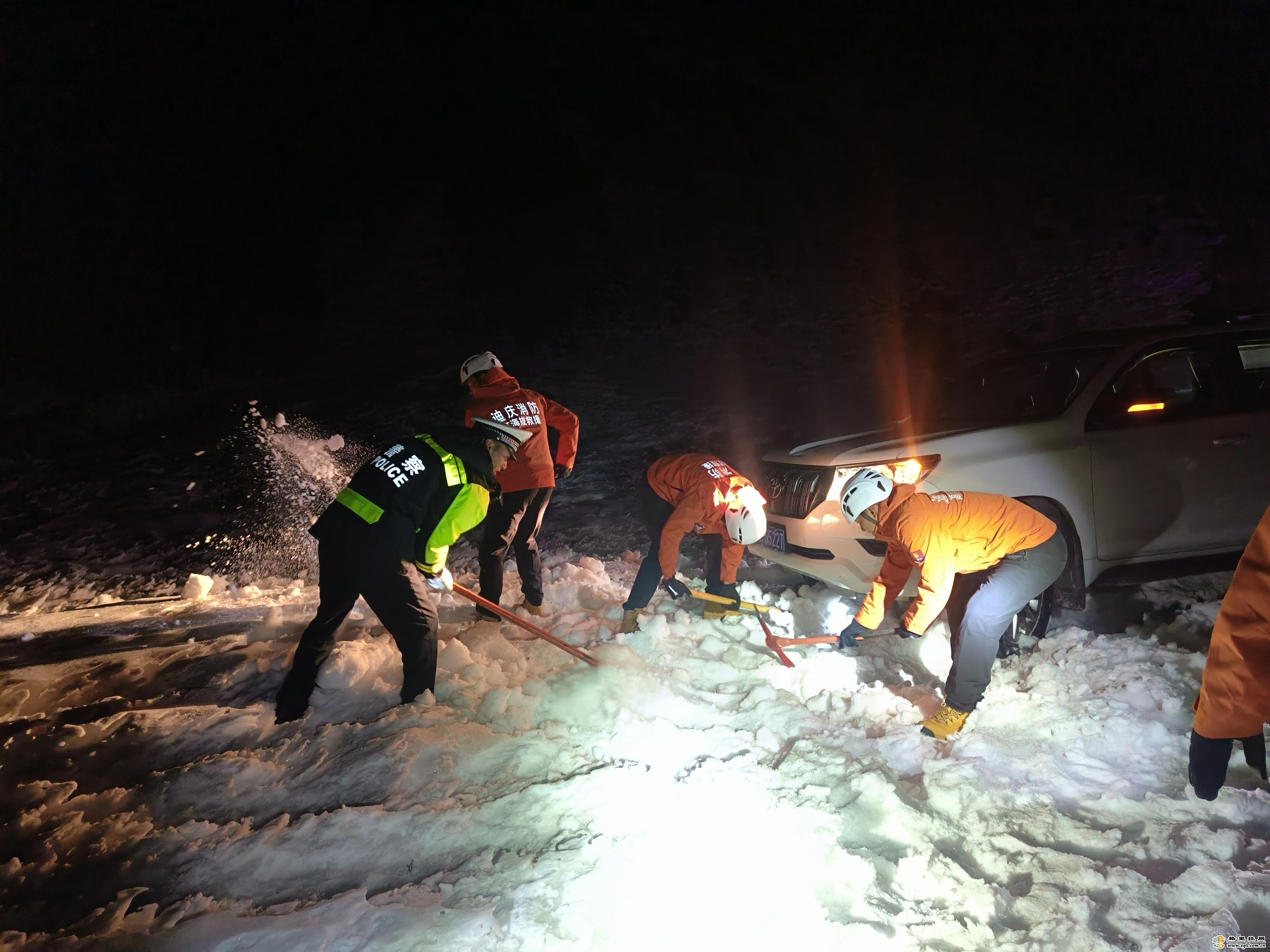 跨年夜兩車雪地受困 迪慶德欽消防緊急救援