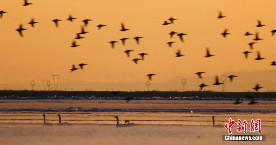 三九寒天,170余只天鵝飛抵柴達(dá)木盆地的青海省海西州青??婶斂撕?托素湖省級(jí)自然保護(hù)區(qū),同時(shí)還有熊貓鴨、鵲鴨、普通秋沙鴨、綠頭鴨和潛鴨等。它們?cè)谶@里嬉戲、覓食,給保護(hù)區(qū)增添了一道亮麗獨(dú)特的風(fēng)景線。