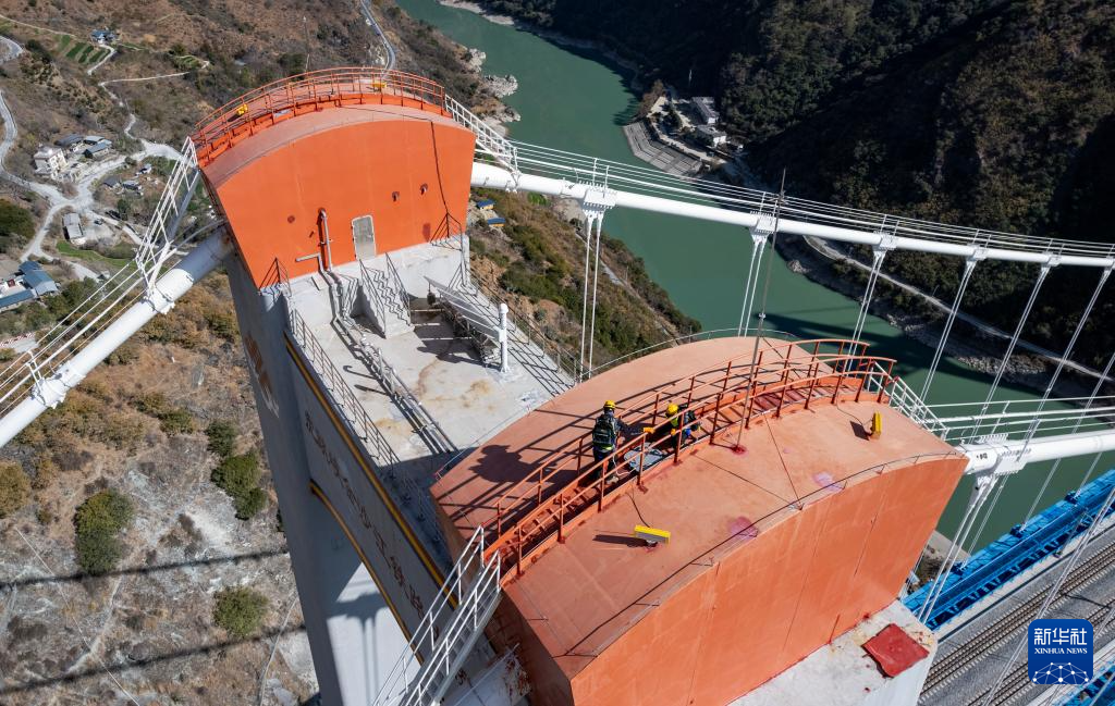 云南麗江至香格里拉鐵路(麗香鐵路)即將迎來開通后的首個春運,為確保旅客平安出行,國鐵昆明局廣通工電段新尚綜合維修工區(qū)班對虎跳峽金沙江鐵路大橋進行全面“體檢”。