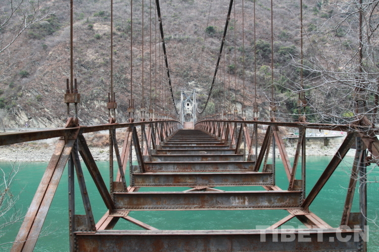 該橋始建于1950年11月。當(dāng)時為了徹底解放西藏、鞏固西南邊防,中國人民解放軍第十八軍在劉伯承、鄧小平、賀龍等同志“一面進軍,一面建設(shè)”的號召下,在修筑川藏公路的同時,由西南交通部負(fù)責(zé),廣大解放軍指戰(zhàn)員、全體技術(shù)人員和各路民工發(fā)揚不怕犧牲的革命精神,克服一切困難,修建了川藏公路上的第一座鋼索懸橋,于1951年5月底勝利完成了建橋任務(wù)。