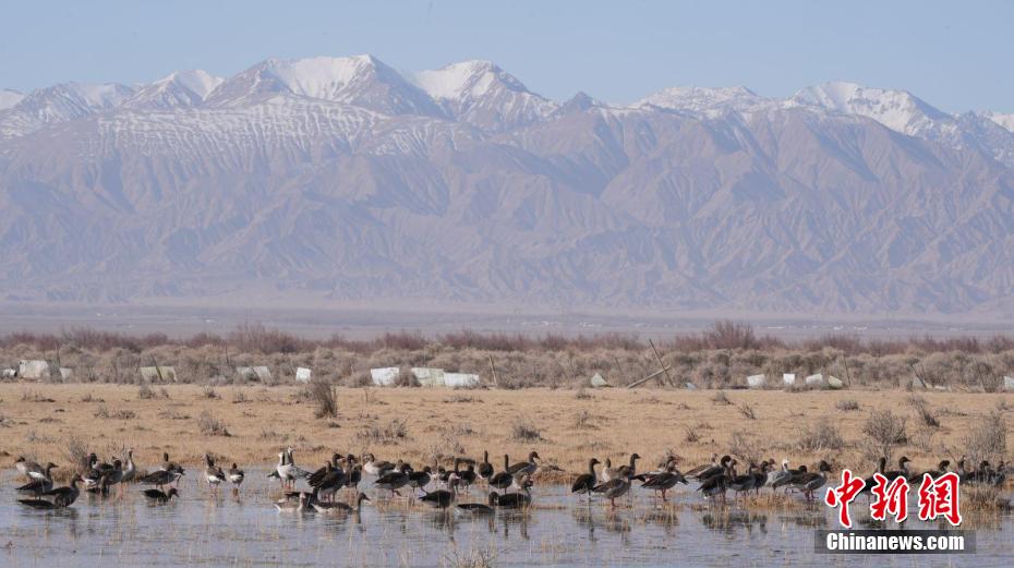 近日,隨著天氣轉(zhuǎn)暖,在青海省柴達木盆地,大批國家二級重點保護野生動物灰鶴聚集于都蘭縣巴隆鄉(xiāng)。此外,野生天鵝、斑頭雁、黃鴨、赤麻鴨等鳥類也聚集于此,或展翅高飛,或覓食嬉戲,在候鳥遷徙季勾勒出一幅山水靜好、飛鳥翔集的美麗生態(tài)畫卷。