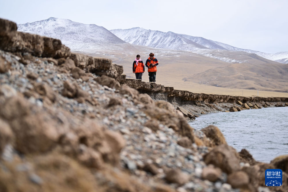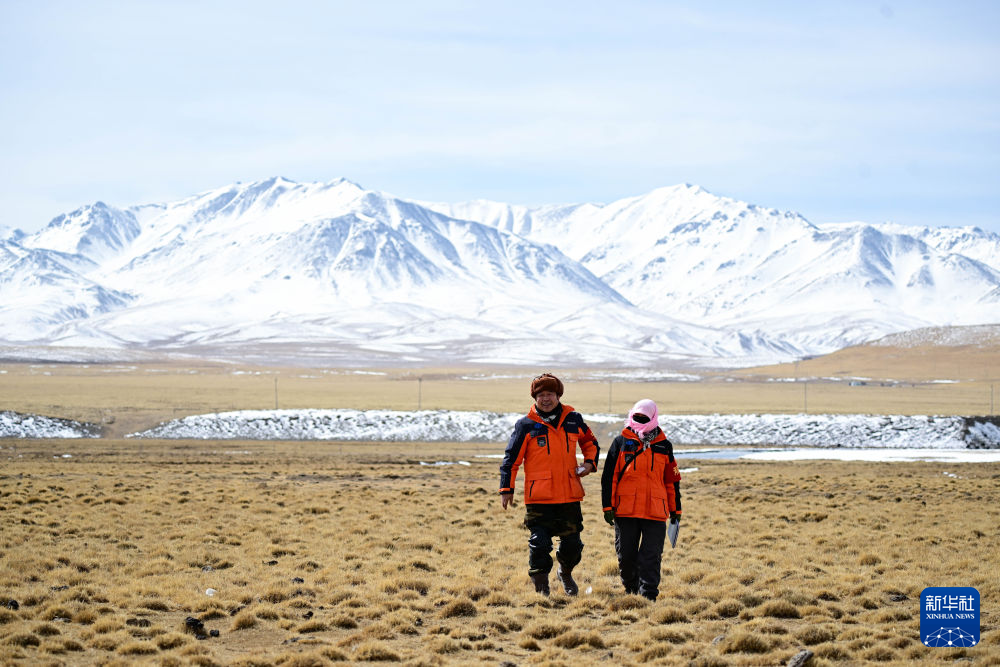 3月21日,葉金俄日(右)與東木措在青海省海北藏族自治州祁連縣的黑河流域巡護(hù)。新華社記者 張龍 攝