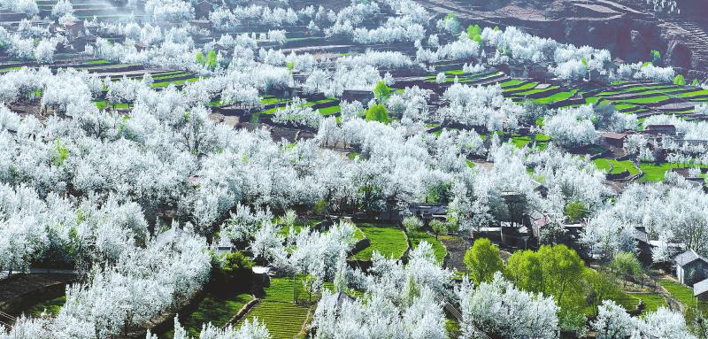 3月17日,四川省阿壩州金川縣萬(wàn)畝梨花綻放,滿(mǎn)山遍野,雪白的梨花,隨風(fēng)飄絮,藍(lán)天白云,花海飄香,令人陶醉。吸引眾多游客前來(lái)游覽、拍照。[詳細(xì)] -