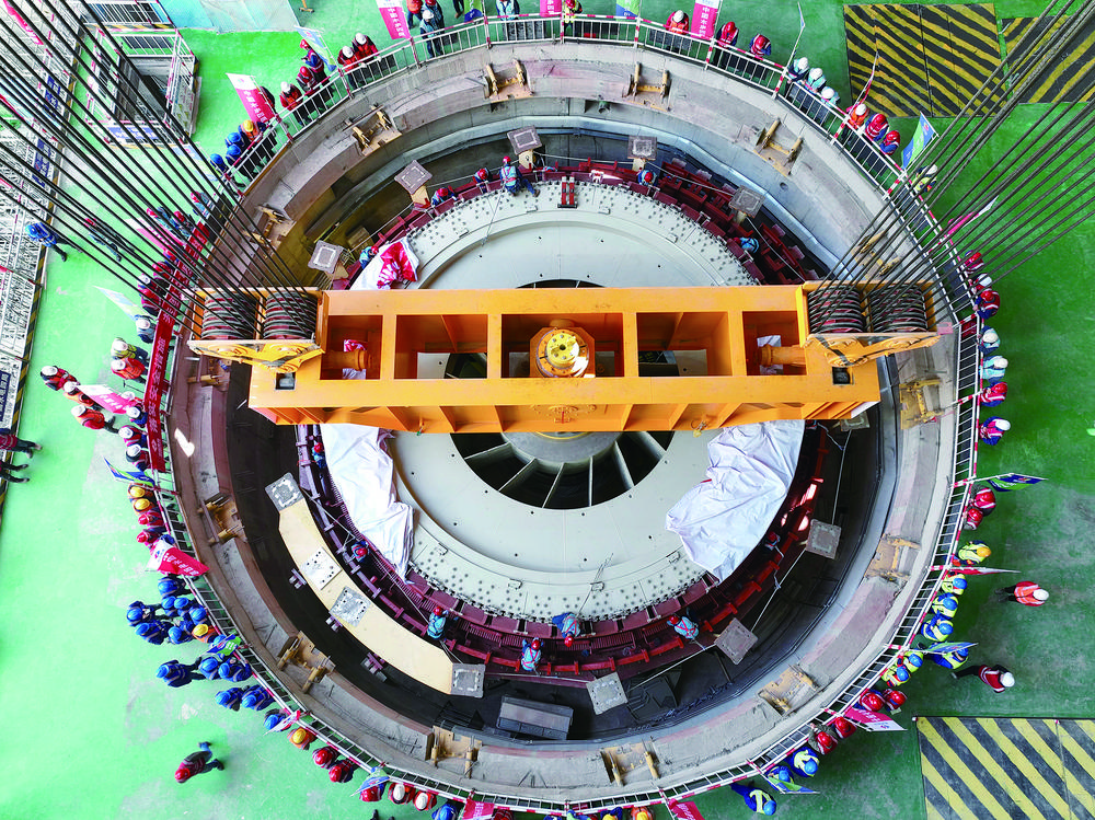 羊曲水電站首臺機組轉(zhuǎn)子吊裝成功