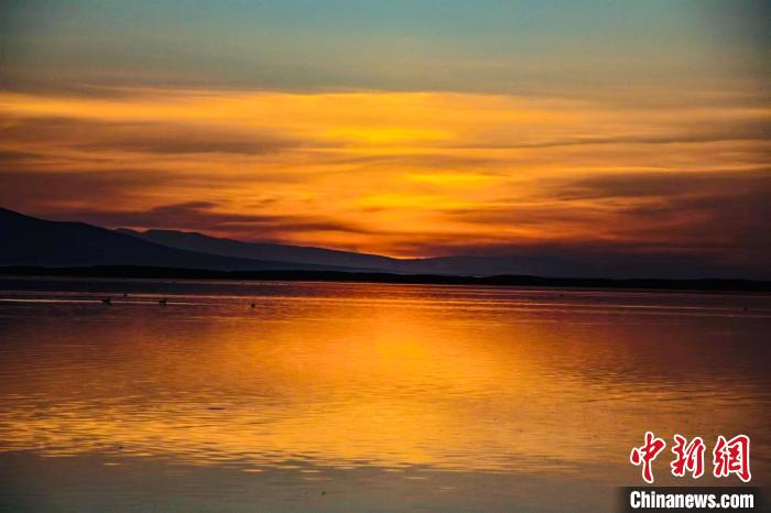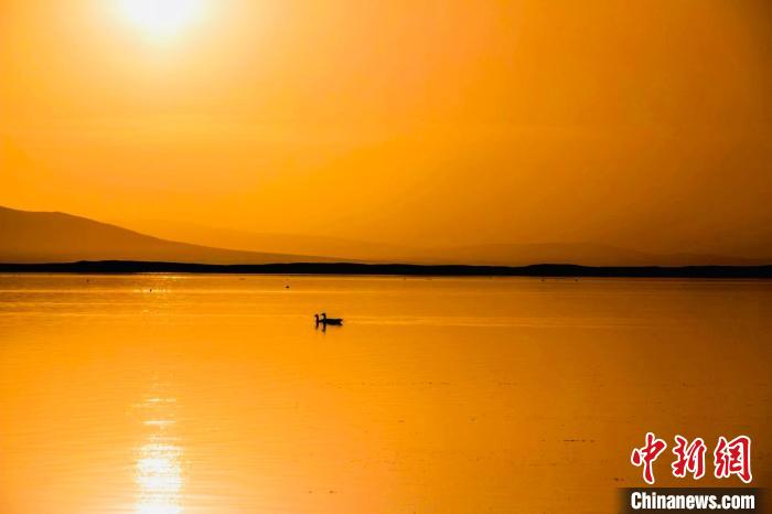 圖為青海湖夕陽(yáng)如夢(mèng)如幻。趙海梅 攝
