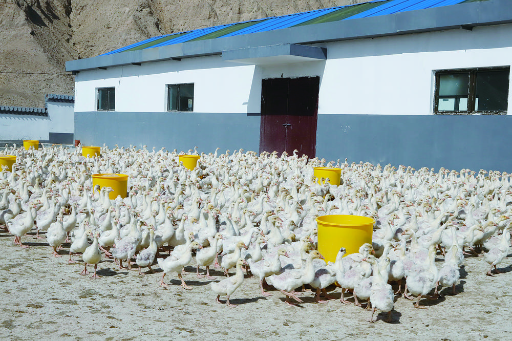 “養(yǎng)殖基地按月招聘工作人員2名,都是本村的群眾,主要負(fù)責(zé)清洗鵝圈、投放飼料、消毒等工作,每個(gè)月有3000元不等的收入?!眲倓倢?shí)現(xiàn)家門口就業(yè)的仁青吉面露笑容地說(shuō)道。