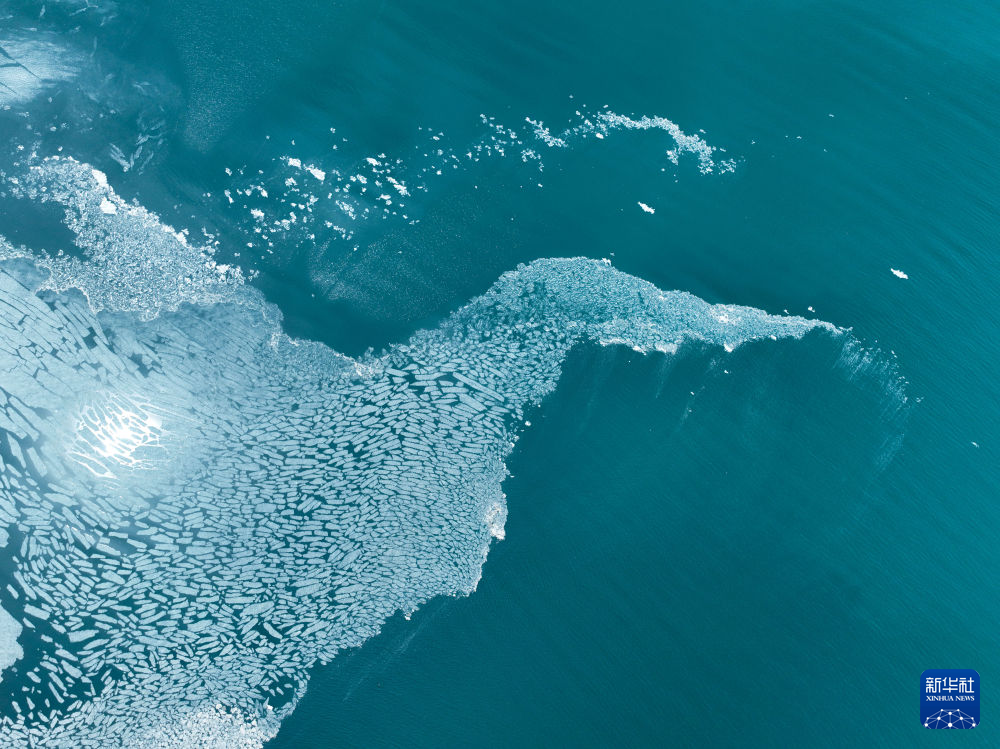 這是4月11日在青海湖拍攝的部分未融化的湖冰(無(wú)人機(jī)照片)。新華社記者 張龍 攝